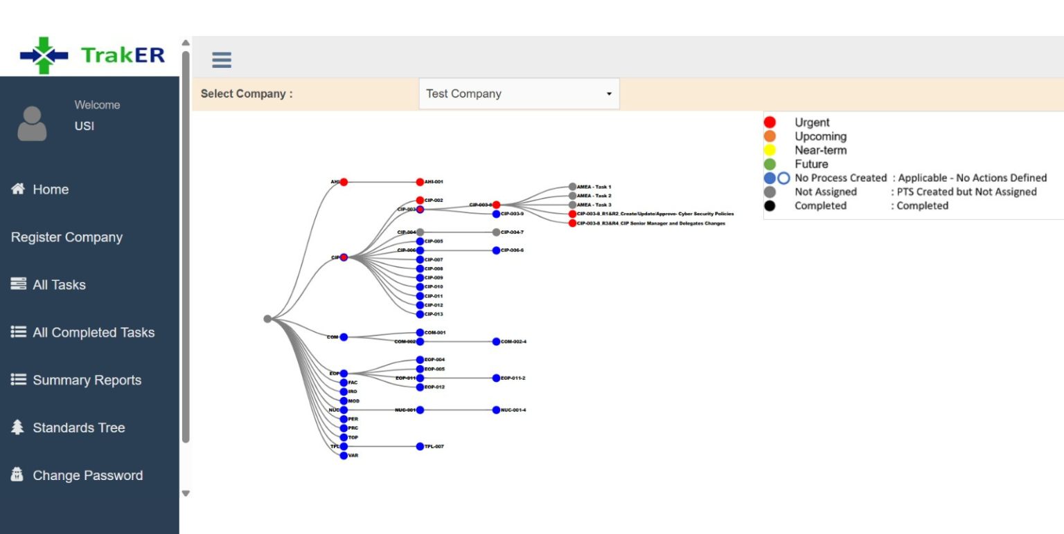 TrakER takes the complexity out of regulatory compliance. It provides a clear, real-time view of your compliance posture, maps requirements to internal controls, and report with confidence for most up-to-date NERC CIP and O&M standards (PRC, FAC, EOP, VAR, etc.)